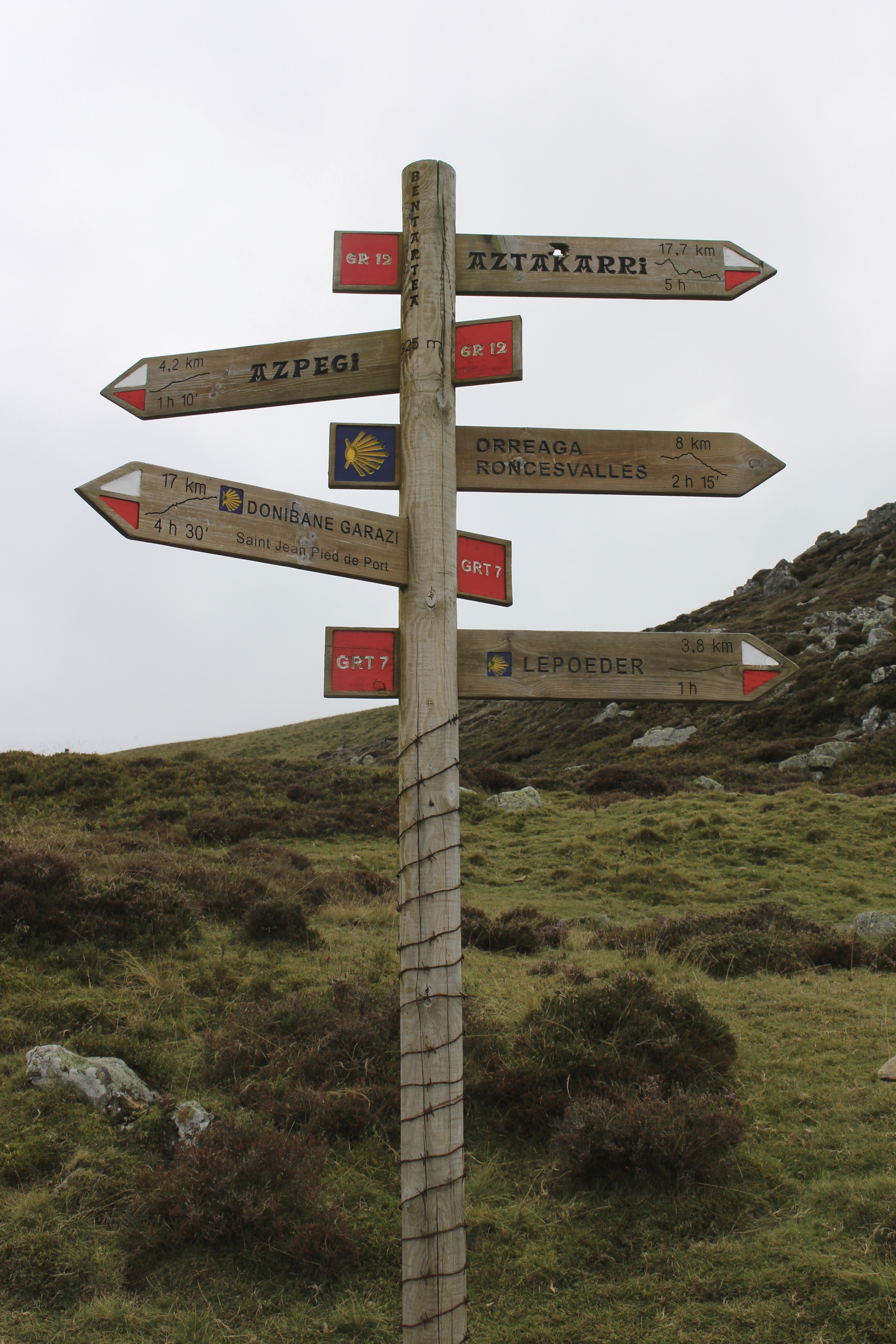 The first part of the hike, which was the uphill climb, was hard! We were both out of breath. My mom was definitely having a harder time than I but she kept up, sort of. The elevation mixed with the incline mixed with a 25 pound back pack on my back mixed with a tired mom straggling behind me…. I was already thinking maybe we should have started with the easier route. As the trek got longer and steeper, we started to lose enthusiasm. But the road from Saint Jean to Roncsevalles is unbelievably stunningly breathtakingly gorgeous. The entire route was covered with rolling hills of horses, cattle and sheep grazing calmly and just watching us walk on by.