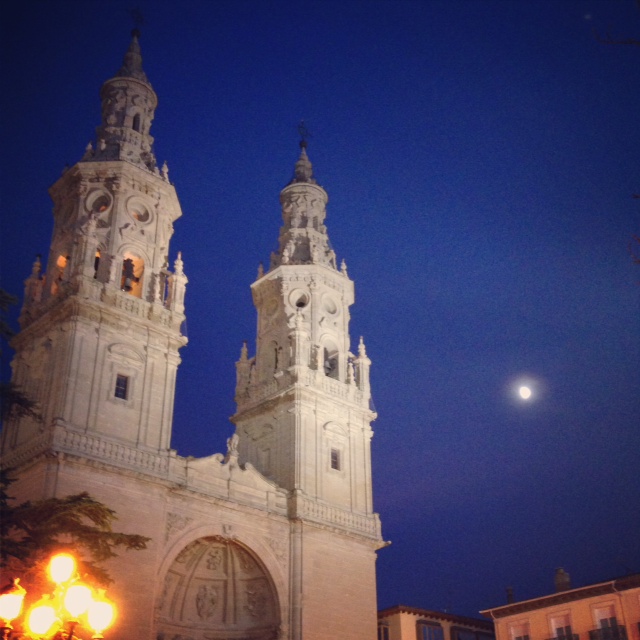 The moon and the church bells on a Sunday night in Calle de Mercado in Logroño..