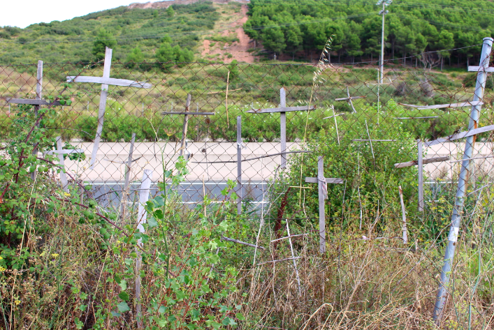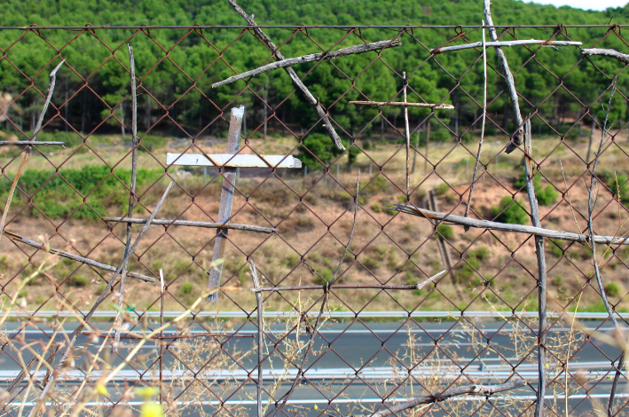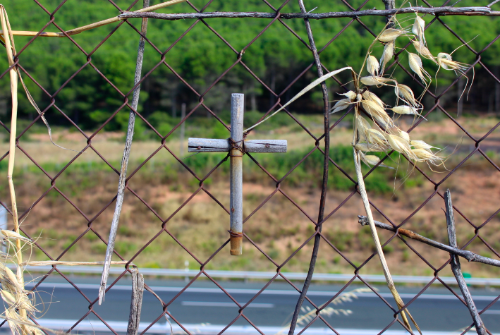 The cool thing was seeing what people came up with to leave a cross on the fence. We saw athletic tape, paper, and even a pair of socks!